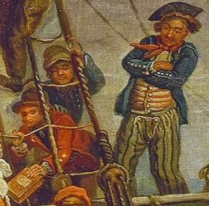 | Detail from The Embarkation by John Collett, circa 1760s, Nation Maritime Museum (UK) |